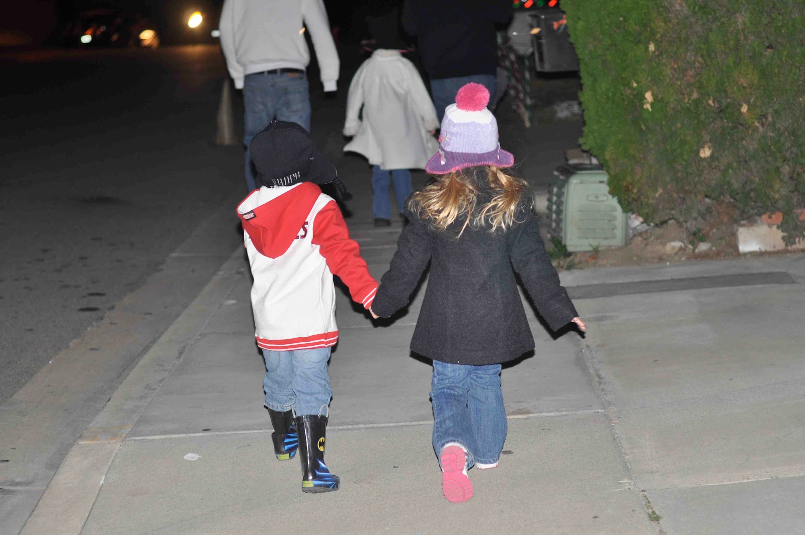 We then met up with our Nemrow friends for a night of light house looking! Freddy remembered when he was living in Chino Hills that there was one neighbor in Chino that had rows of "Clark Griswald" homes with amazing displays of Christmas awesomeness on their lawns and roofs! Really amazing! I wish I would have gotten more pictures of the houses, but the flash kind of took away the splendor of it.  It was also ridiculously windy and cold, but the kids didn't seem to mind. But we met up at Starbucks for Salted Carmel hot chocolates afterwards and all was well.